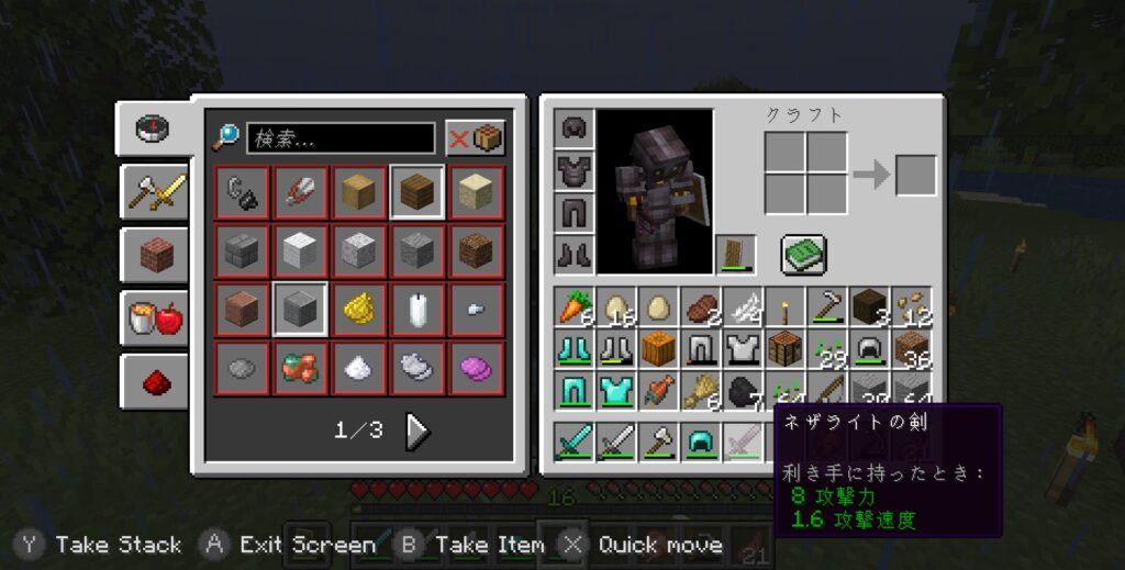 ついでにコマンドを入力するとプレイヤーの体力と空腹度が最大値になるようにしました。