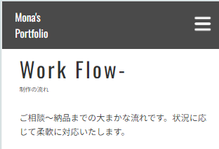 今回はポートフォリオサイトのスマホ版を完成させます。About、Work Flow、Message、連絡先、footerの作成を行っていきます。