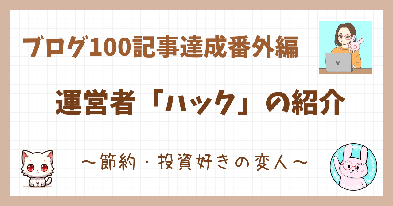 今回は100記事到達記念番外編として運営者であるハックの紹介を行いました。
